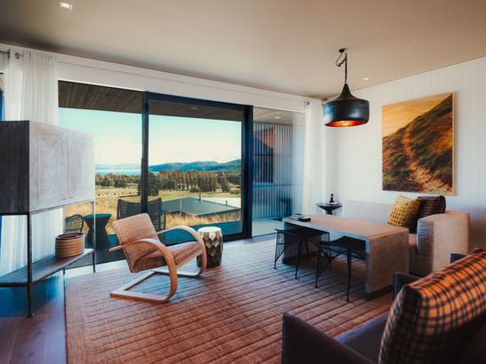 Kinloch Manor & Villas offers a modern, architectural counterpoint to the ruggedness of the surrounding landscape. Suites and villas are built into the hillside and framed by native plantings, offering total privacy and open outlooks. Interiors are sophisticated yet warm, with clean lines, natural materials, and fireplaces that invite you to unwind after a day on the course.
