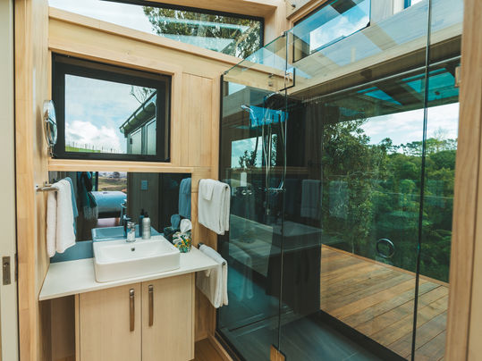 While the PurePod rests on a working farm, it’s perfectly positioned to feel far removed. Tucked into a private fold of the land, you’ll look out over uninterrupted bushland, farmland, and towards the vast Kaipara Harbour - New Zealand’s largest by coastline.