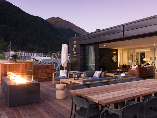 The Penthouse's private terrace - the largest of its kind in Queenstown - boasts an outdoor fireplace, spa pool, and alfresco dining area, providing an idyllic setting for intimate gatherings or serene relaxation. Inside, a state-of-the-art kitchen equipped with Gaggenau and Sub-Zero appliances caters to culinary enthusiasts, while the indoor sauna offers a sanctuary of wellness.